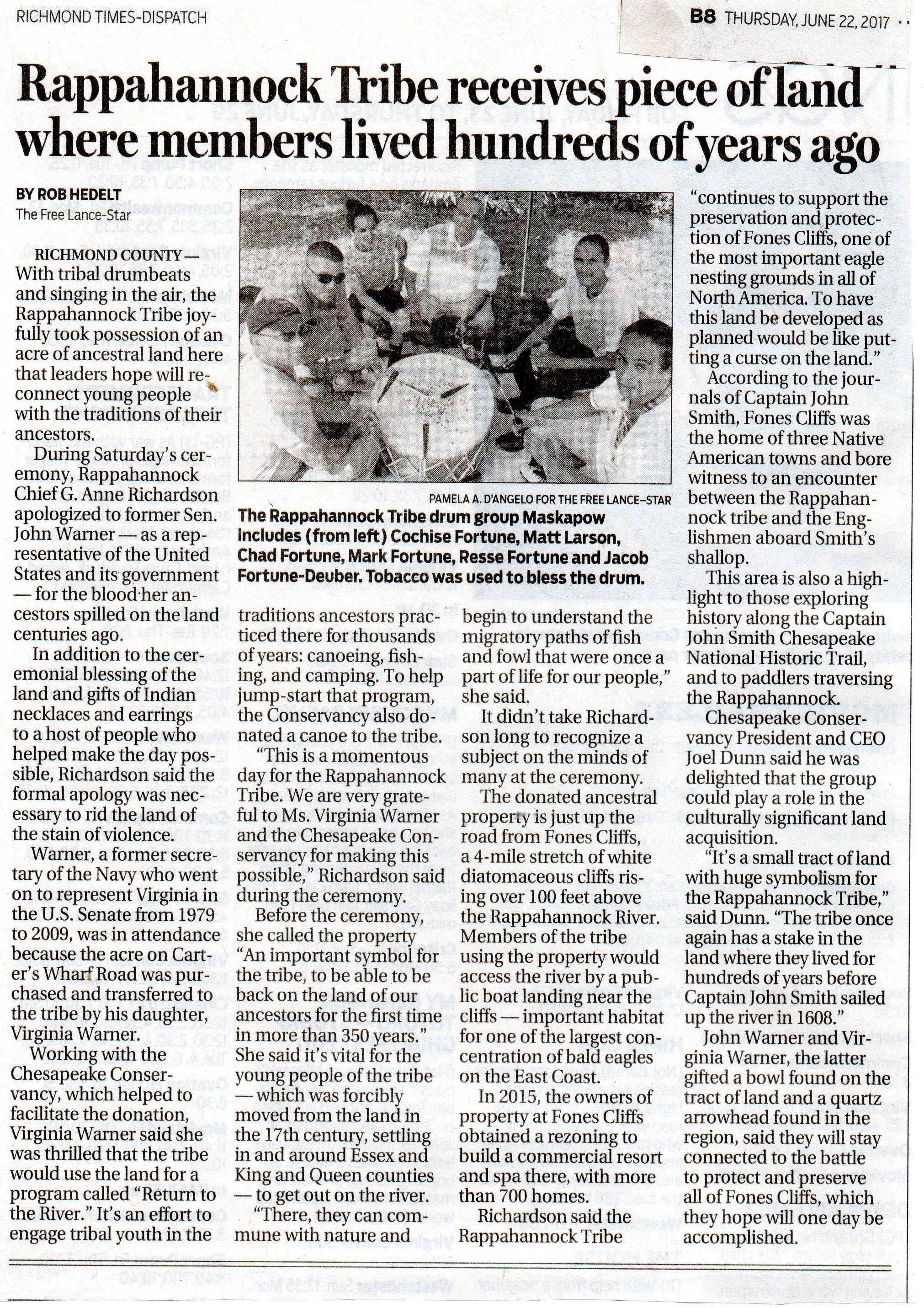 - Free Lance-Star, July 18, 2016: Iconic Indian site on Bay purchased by National Park Service