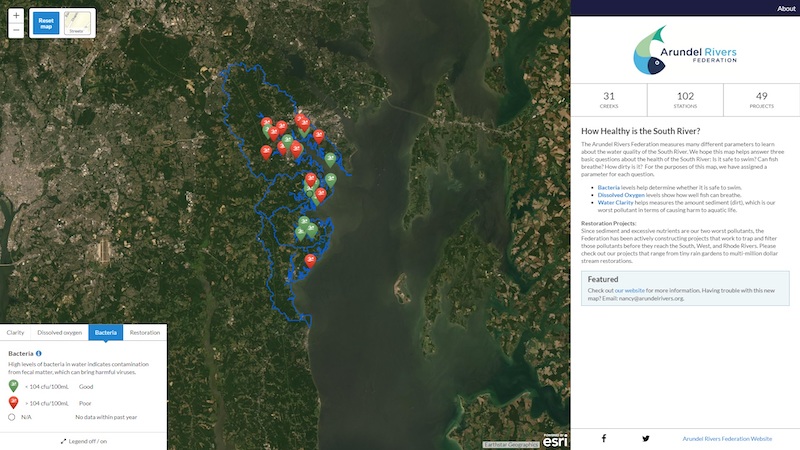 The Arundel Rivers Federation launched a new online water quality map built in partnership with the Chesapeake Conservancy to help visualize data from water quality samples. The tool helps answer: