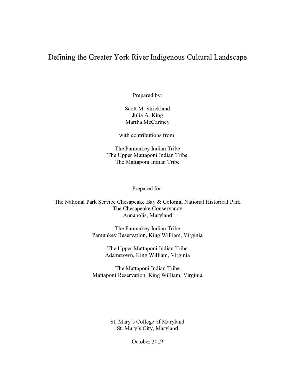 St. Mary’s College of Maryland and the National Park Service completed the most recent ICL report in 2019. The York River watershed includes the Pamunkey and Mattaponi Rivers and is tied to The Pamunkey Indian Tribe, The Upper Mattaponi Indian Tribe, and The Mattaponi Indian Tribe. Members of the three tribes were invaluable contributors to the study.